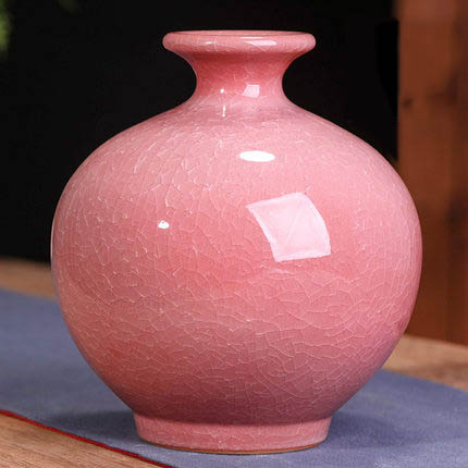 Pink ice cracked pomegranate shape ceramic small vase
