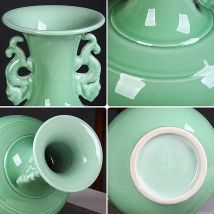 Creative Shadow Celadon Binaural Vase Flower Arrangement Ceramics