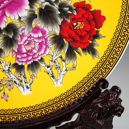 40cm diameter yellow background peony flower porcelain hanging plate